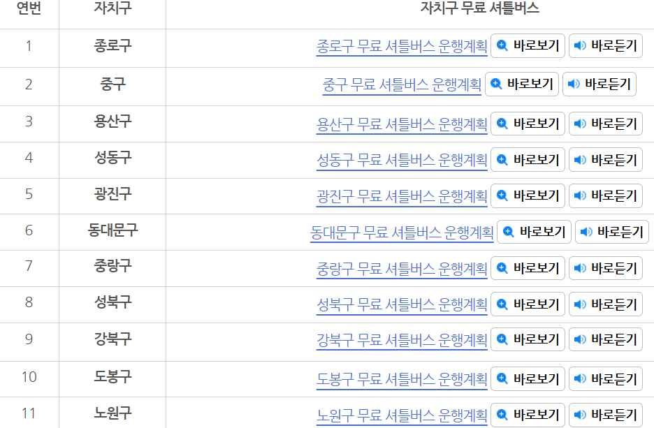 그 핵심이 바로 자치구별 무료 셔틀버스 운행입니다.