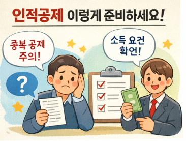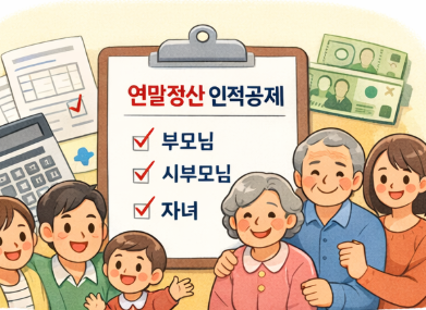 중복 공제와 소득 기준 착오만 주의한다면, 인적공제만으로도 환급액이 크게 달라질 수 있습니다. 올해 연말정산에서는 가족 상황을 다시 한 번 점검하고, 받을 수 있는 혜택을 놓치지 마시기 바랍니다.