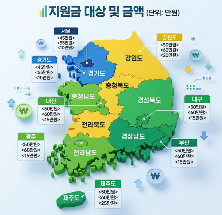결론부터 말씀드리면, 이번 지원금은 소득 하위 70% 국민에게 최대 60만 원까지 지급되며, 지역과 소득에 따라 금액이 달라집니다.